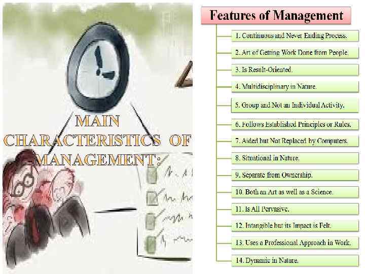 Management as an activity includes Informational activities - involve handling, sharing, and analyzing information. In the functioning of business enterprise, the manager constantly has to receive and give information orally or in written. Decisional activities – require decision-making Therefore, managers are continuously involved in decisions of different kinds since the decision made by one manager becomes the basis of action to be taken by other managers. Interpersonal activities - involve coordination and interaction with employees. Management involves achieving goals through people. Therefore, managers have to interact with superiors as well as the subordinates. They must maintain good relations with them.