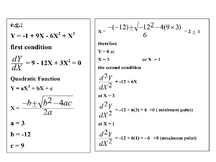 y Max value of y Min value of y x Dy/dx value of dy/dx d 2 y/dx 2 > 0 d 2 y/dx 2 < 0 x