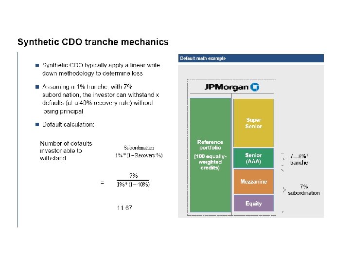 Example of CDOs Source: “ Structured Credit workshop”, JP Morgan