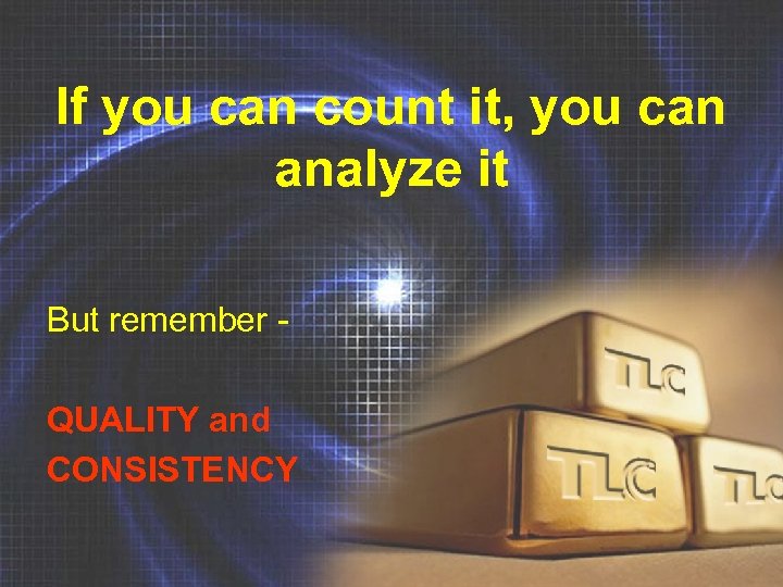 If you can count it, you can analyze it But remember QUALITY and CONSISTENCY