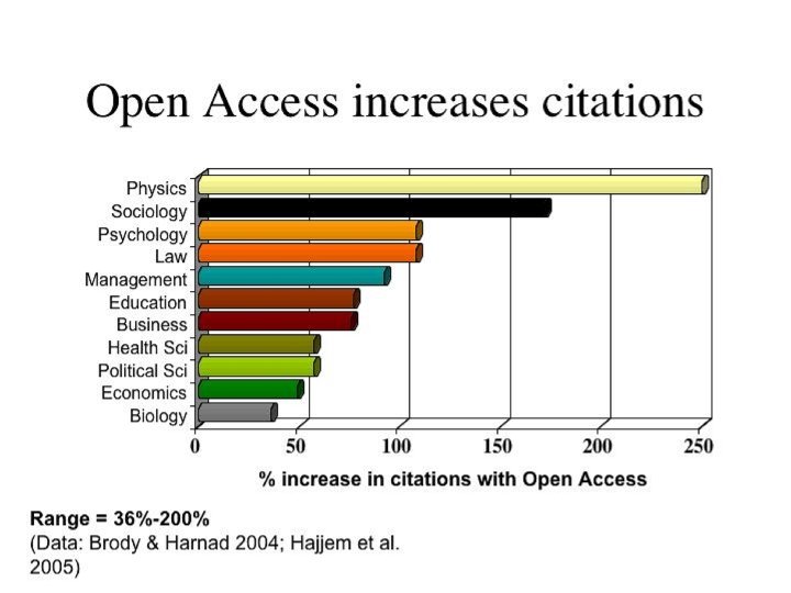 “Online or Invisible? ” (Lawrence 2001) “average of 336% more citations to online articles compared to offline articles published in the same venue” Lawrence, S. (2001) Free online availability substantially increases a paper's impact Nature 411 (6837): 521. http: //www. neci. nec. com/~lawrence/papers/online-nature 01/