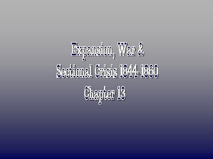 War, Expansion & Slavery, 1846 - 1850 • ***Wilmot Proviso*** – David Wilmot (D – NY) – Introduced an amendment to a bill stating slavery would NOT exist in any land gained from Mexico – Passed the House (more population in North), but NOT the Senate • Free-Soil Party: – Were against the extension of slavery into territories – took away jobs from whites – “Free labor, free soil, free men”