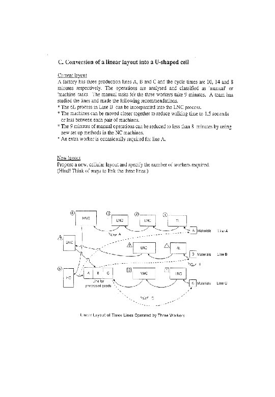 Layout Configurations • Eli Goldratt I, V, U, W • I layouts have linear flow with no direction changes, empty pallets may go in reverse direction. • V and U lines have more direction changes but may help with empty pallets. • Rectilinear layouts may restrict operators from working multiple machines. • Circular layouts may enable operators to work multiple machines. MMM 256/50 © Dr. C. Hicks, MMM Engineering University of Newcastle upon Tyne