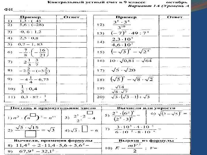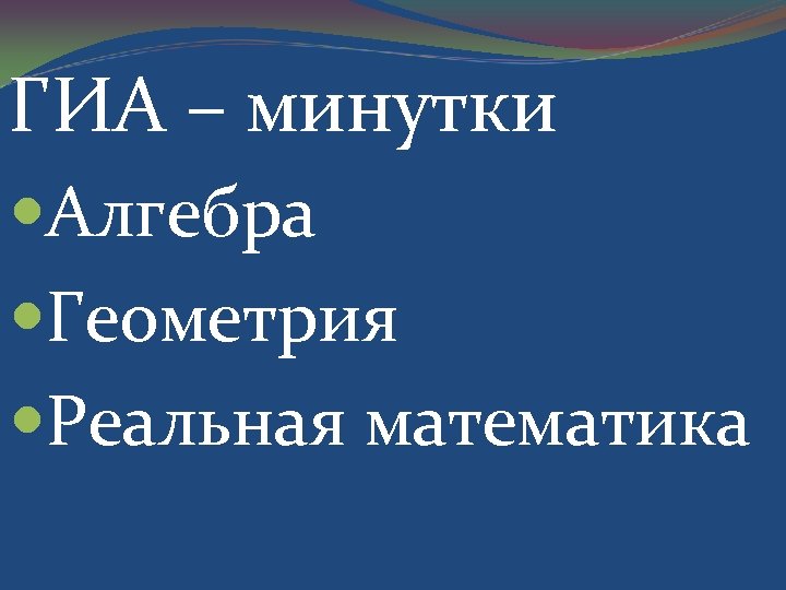 ГИА – минутки Алгебра Геометрия Реальная математика