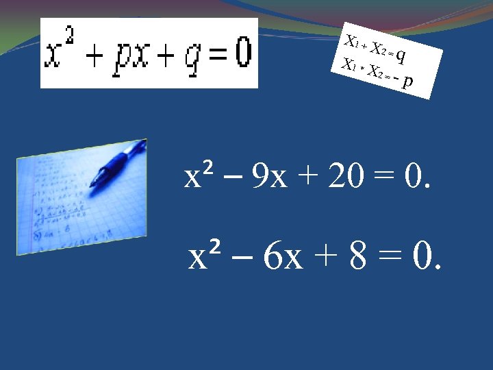 Х 1 + Х Х 1 * Х q 2=p 2= х² – 9 х + 20 = 0. х² – 6 х + 8 = 0.