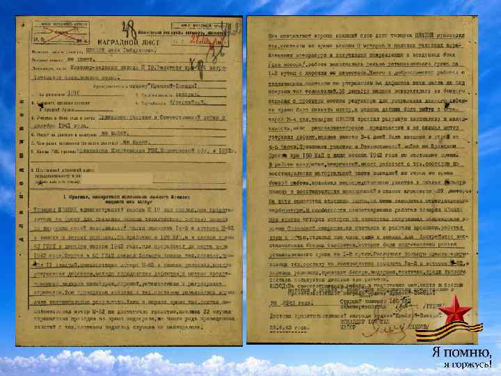 Приказ подразделения №: 75/н от: 06. 11. 1944 Издан: ВВС Орден Красной Звезды Мой прадедушка награжден Орденом Красной Звезды в 1943 году. • За мужество и отвагу, проявленные при исполнении воинского или служебного долга, в условиях, сопряжённых с риском для жизни; • За большие заслуги в поддержании высокой боевой готовности войск, отличные показатели в боевой и политической подготовке, овладении новой боевой техникой и другие заслуги в укреплении оборонной мощи СССР. Боевой орден Красной Звезды был самой желанной и почетной наградой, получить которую было возможно, лишь совершив военный подвиг на благо страны.