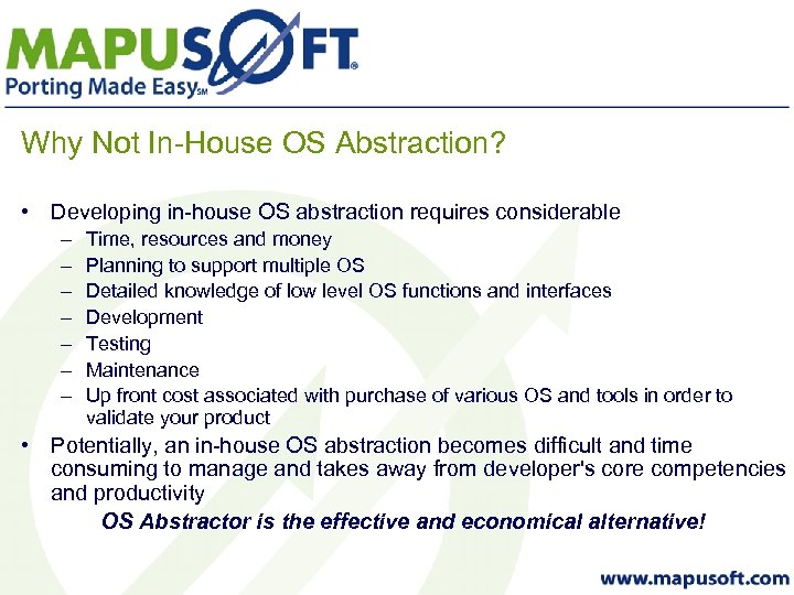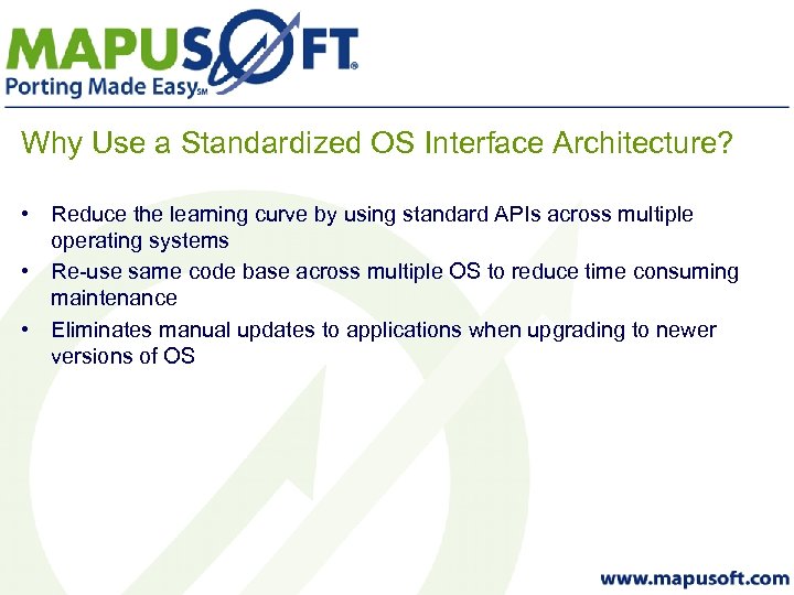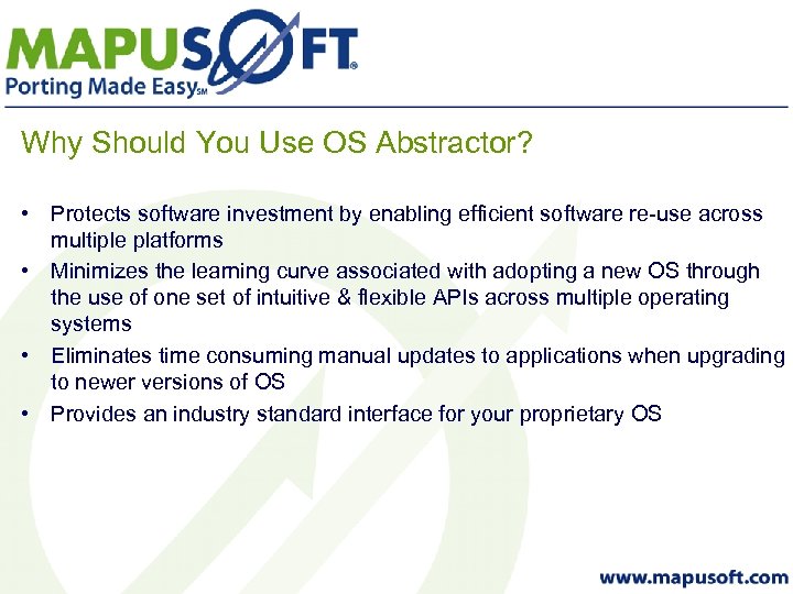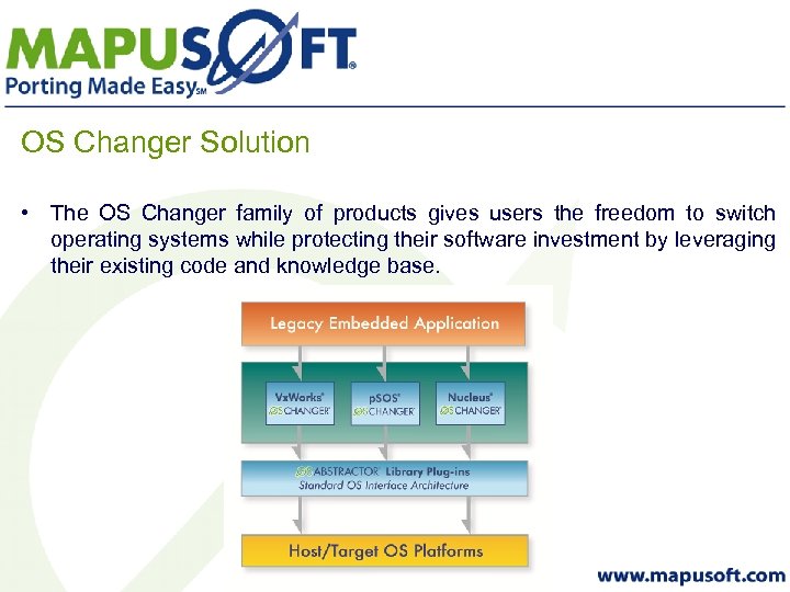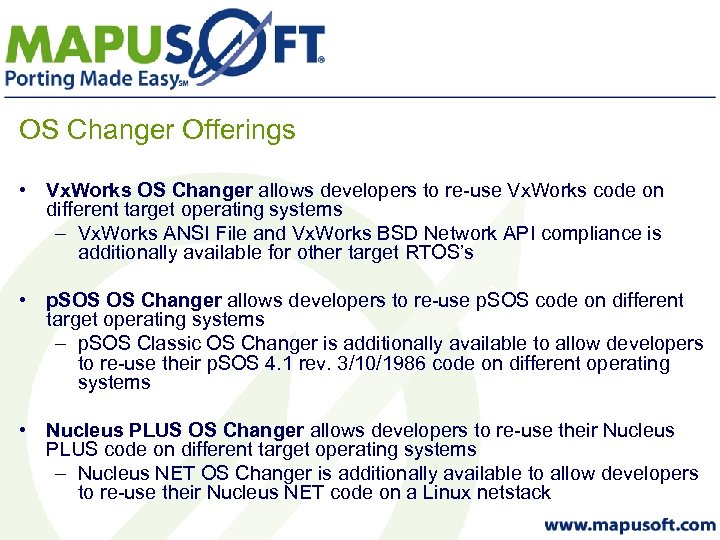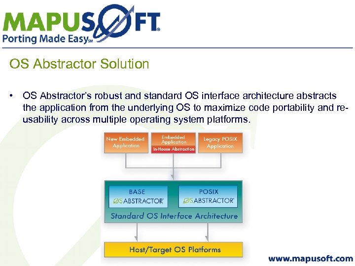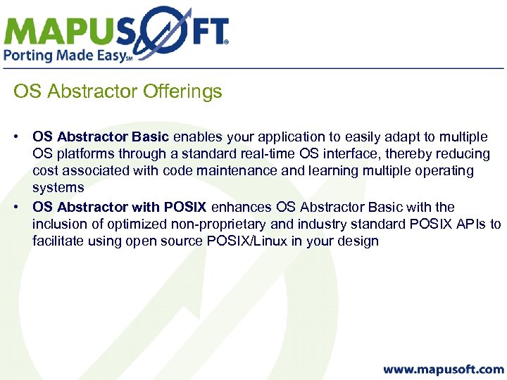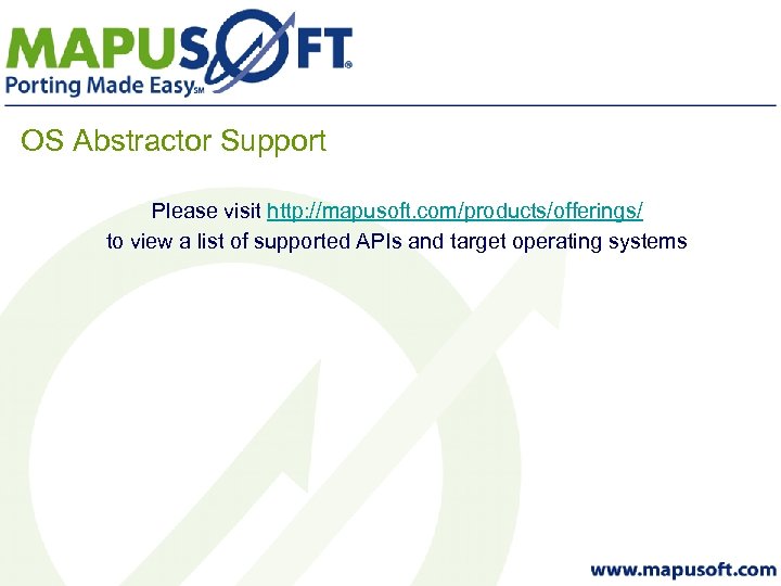 OS Abstractor Support Please visit http: //mapusoft. com/products/offerings/ to view a list of supported APIs and target operating systems