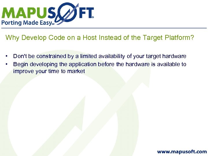 Why Develop Code on a Host Instead of the Target Platform? • Don't be constrained by a limited availability of your target hardware • Begin developing the application before the hardware is available to improve your time to market