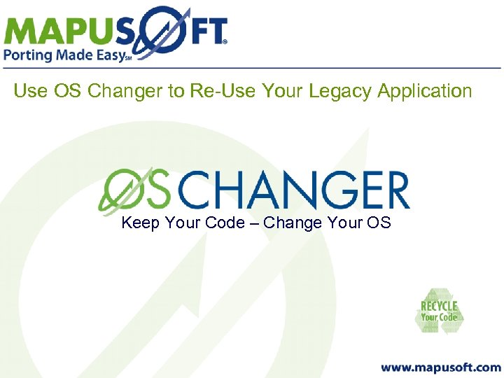 Use OS Changer to Re-Use Your Legacy Application Keep Your Code – Change Your OS