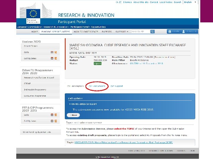 MSCA website: http: //ec. europa. eu/msca MSCA on Facebook: https: //www. facebook. com/Marie. Curie. Actions HORIZON 2020: http: //ec. europa. eu/research/horizon 2020 Participant Portal: http: //ec. europa. eu/research/participants/portal/ EURAXESS European Researchers Mobility Portal: http: //ec. europa. eu/euraxess/