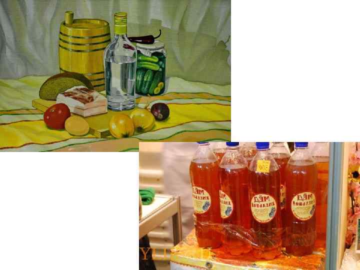 Напитки • Из алкогольных напитков делали водку из хлеба или картофеля (арака), хлебное пиво и хмельной мед. Из безалкогольных напитков делали хлебный квас, а также квас из клюквы или рябины, напиток из черники. • Марийцы очень любили квас. Он являлся из любимым напитком.