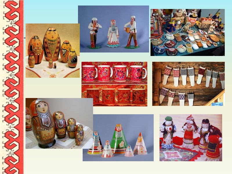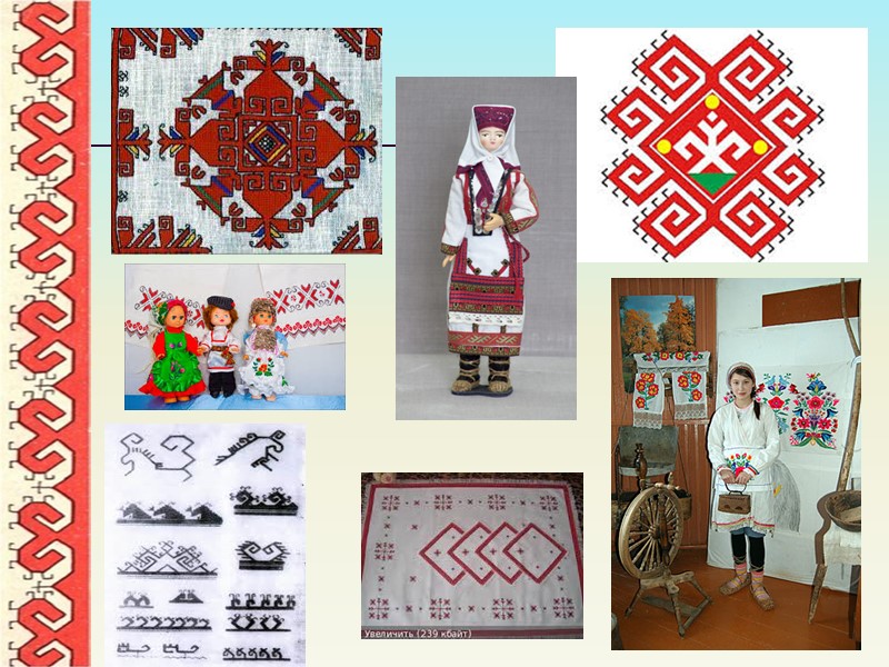 Рукоделие Многие элементы народного костюма – рубахи, кафтаны, головные уборы, передники, поясные подвески – украшались сложной и богатой вышивкой. Вышивание было одним из развитых домашних промыслов марийцев, связанных с изготовлением одежды.