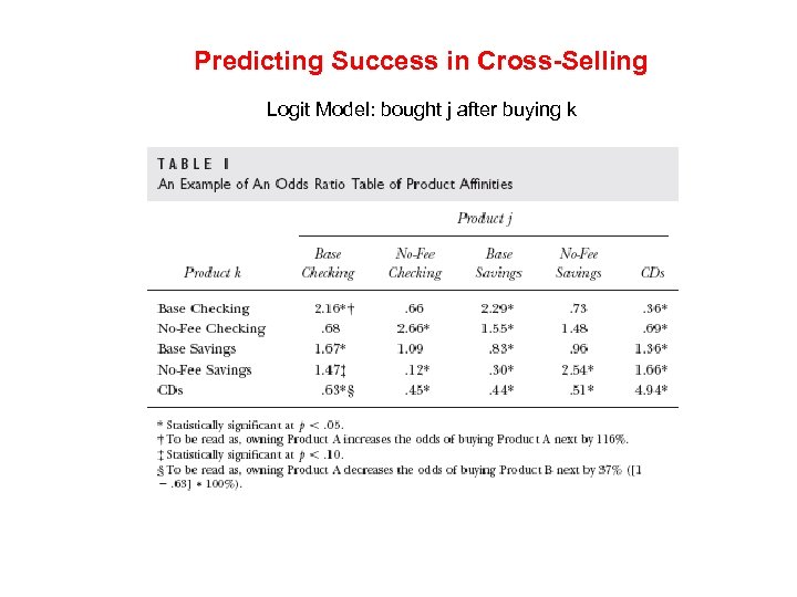 Predicting Success in Cross-Selling Logit Model: bought j after buying k