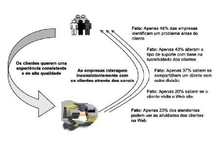 CRM CUSTOMER RELATIONSHIP MANAGEMENT Hoje Ontem A necessidade de integração entre os diversos canais de relacionamentos. . . Sistemas Web Site, (Business Intelligence) EIS (Executive Information Systems) DSS (Decision Support System) Data Warehouse Data Miner Siga DW WORKFLOW Balanced Scorecard BPM e-commerce, e_mailing, etc. . . Marketing Fax, Carta, (DEPARTAMENTAIS) mala direta. . . Administrativos Manufatura Distribuição Recursos Humanos Gestão Qualidade Aut. Comercial Call Center Telemarketing Televendas Wireless Devices Field Service (VERTICAIS) Acadêmico Concessionárias Hospitais Prefeituras Planos de Saude CLIENTE Call Center Vendas Contato físico E-Commerce Market Places E-Learning