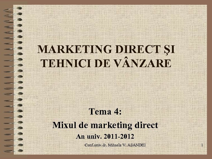 MARKETING DIRECT ŞI TEHNICI DE V NZARE Tema 4: Mixul de marketing direct An univ. 2011 -2012 Conf. univ. dr. Mihaela V. ASANDEI 1