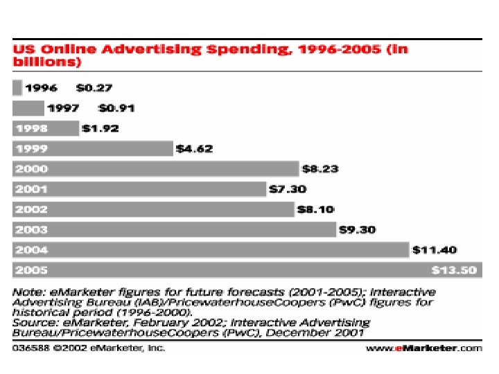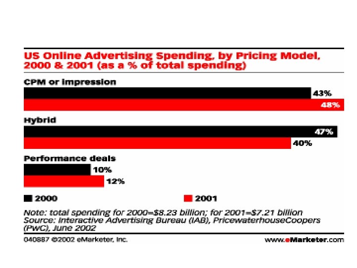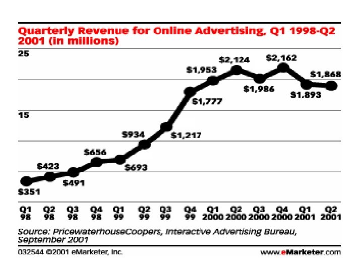• Près de 90% des investissements publicitaires se font sur 3 sites – (AOL 2 milliards $ sur les 8 dépensés aux USA) • La majorité des sites, incluant les trois principaux, ne peuvent tabler sur la publicité pour rentabiliser leurs activités • Des modèles d ’affaires complets furent basés sur cette source de revenus avec les résultats que l ’on sait (buy. com)
