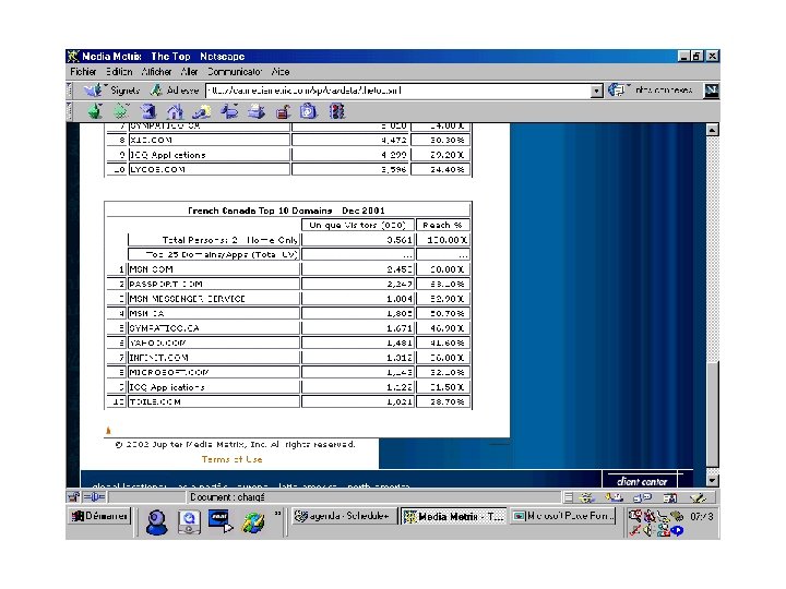 Au Québec • En 2001 les revenus totaux de publicité pour les sites québécois furent de 9 millions • L ’industrie de la publicité au Québec représente un marché de 1, 7 milliards • Nous en sommes à peine à 1% de part de marché