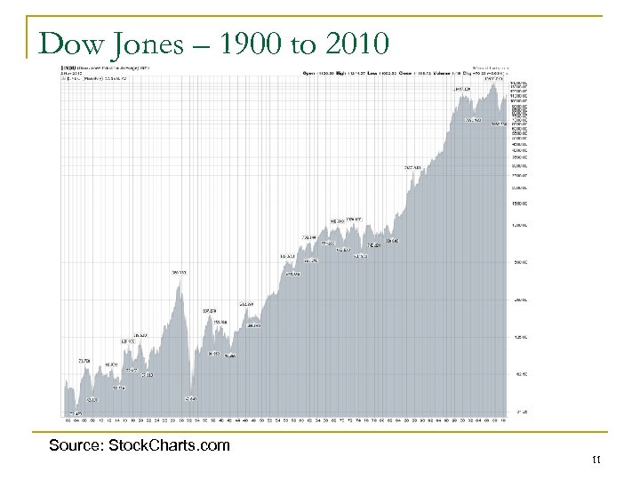 Dow Jones – 1900 to 2010 Source: Stock. Charts. com 11