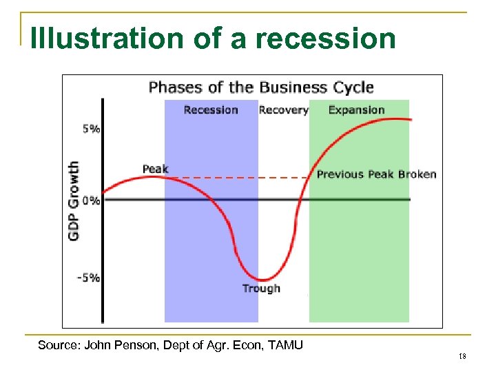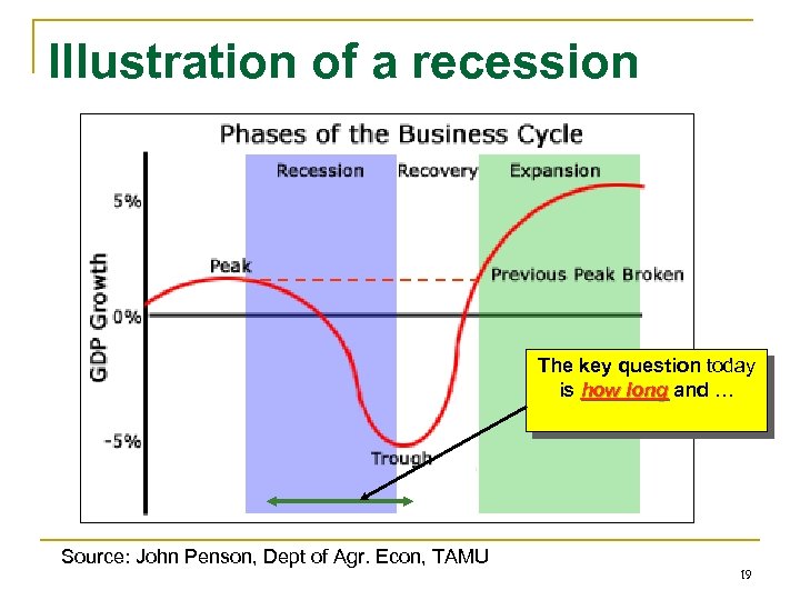 Illustration of a recession Source: John Penson, Dept of Agr. Econ, TAMU 18