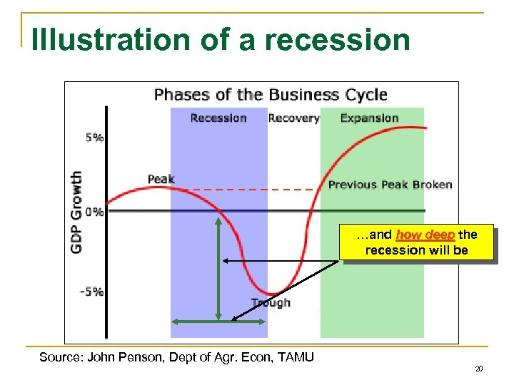 Illustration of a recession The key question today is how long and … Source: John Penson, Dept of Agr. Econ, TAMU 19