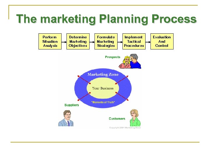 The marketing Planning Process Perform Situation Analysis Determine Marketing Objectives Formulate Marketing Strategies Implement Tactical Procedures Evaluation And Control