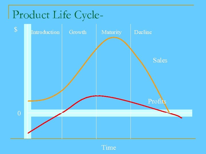 Product Life Cycle$ Introduction Growth Maturity Decline Sales Profits 0 Time