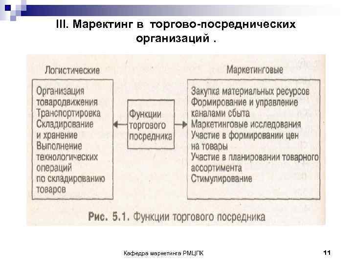 III. Маректинг в торгово-посреднических организаций. Кафедра маркетинга РМЦПК 11