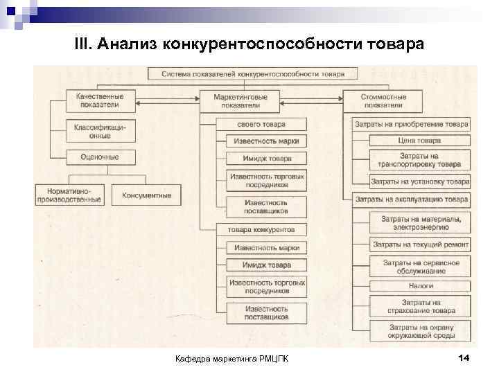 III. Анализ конкурентоспособности товара Кафедра маркетинга РМЦПК 14