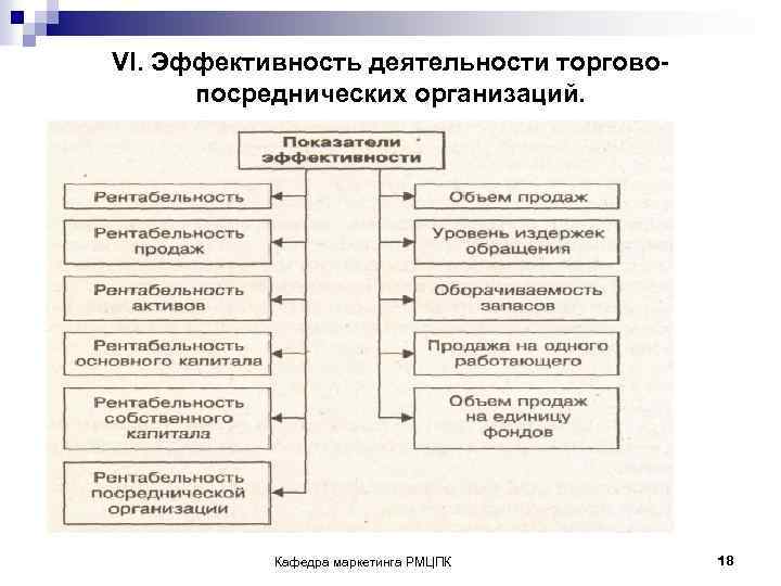 VI. Эффективность деятельности торговопосреднических организаций. Кафедра маркетинга РМЦПК 18