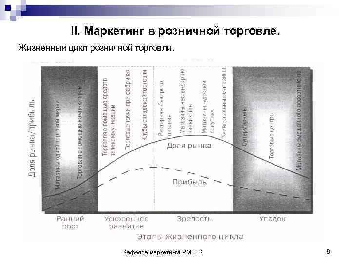 II. Маркетинг в розничной торговле. Жизненный цикл розничной торговли. Кафедра маркетинга РМЦПК 9