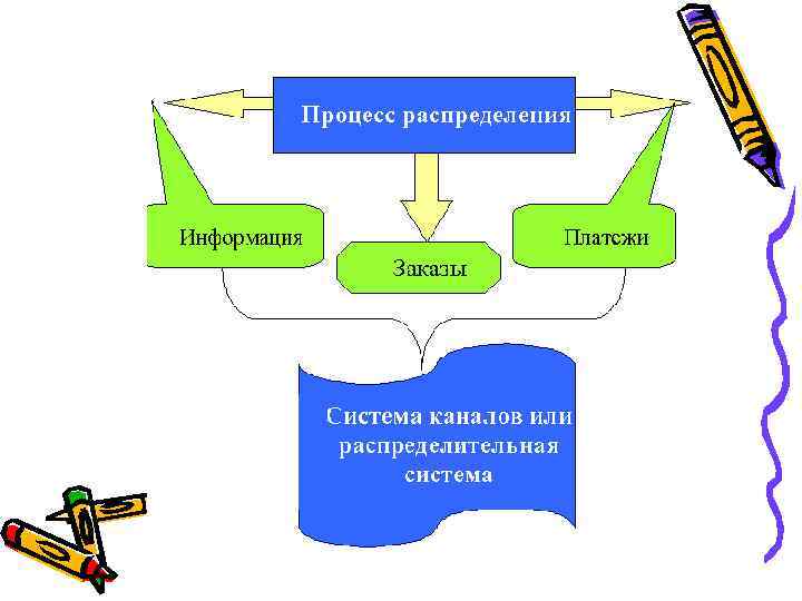 Канал распределения – это совокупность юридических или физических лиц, которые принимают на себя или участвуют в передаче другим права собственности на товар или услугу на их пути от производителя к потребителю. Функции каналов распределения Внешняя логистика: обеспечение перемещения товара к покупателю, обеспечение его доступности Маркетинг и продажи: деятельность по сбору информации о потребностях и требованиях клиентов, активные действия по предложению продаваемого товара на рынке, убеждению клиентов в необходимости покупки Сервис: обеспечение услуг, поддерживающих или повышающих ценность товара