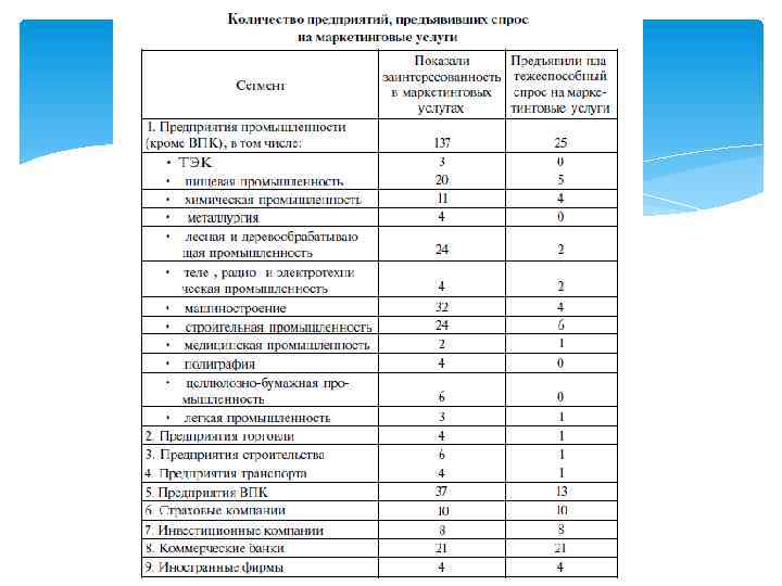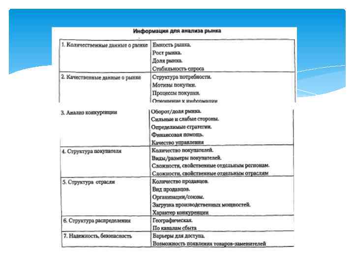 Разделы рабочей гипотезы маркетингового исследования продукт, номенклатура продуктов определение главного назначения товаров система обеспечения качества потенциальные покупатели (потребители) характеристика снабжения рынка система сбыта продукции конкуренция
