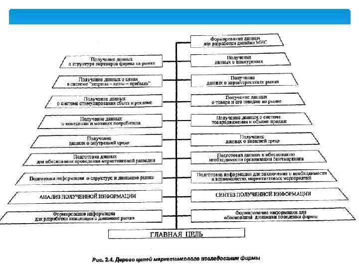 Задачи маркетингового исследования 1) обеспечивать работу руководства предприятия; 2) заблаговременно оценивать шансы и риск; 3) содействовать на каждой фазе поиска решений объективности и представительности деловой ситуации; 4) способствовать пониманию целей и процессу обучения на предприятии