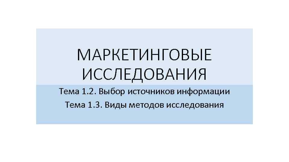 МАРКЕТИНГОВЫЕ ИССЛЕДОВАНИЯ Тема 1. 2. Выбор источников информации Тема 1. 3. Виды методов исследования
