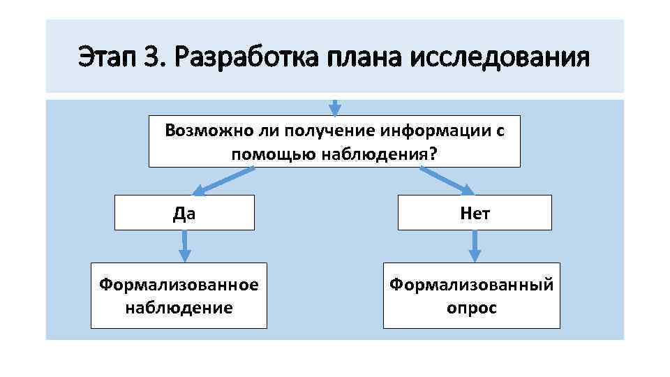 Этап 3. Разработка плана исследования Возможно ли получение информации с помощью наблюдения? Да Нет Формализованное наблюдение Формализованный опрос