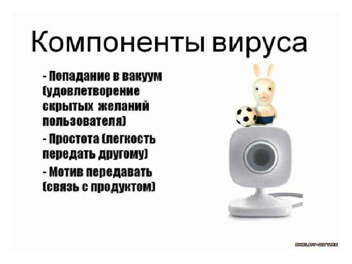 Вирусный маркетинг • Вирусный маркетинг – это метод рекламы, результатом которого является постоянное распространение информации рекламодателя. В качестве средств распространения информации используются электронные книги, юмористические картинки и flash-мультики, flash-игры, видео-ролики с забавным или шокирующим содержанием. • Преимущество - информация распространяется практически без участия рекламодателя. Пользователи сами распространяют ее, пересылая своим друзьям и знакомым носитель информации.