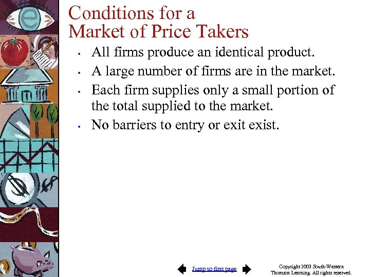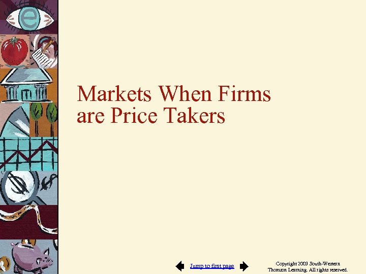 Markets When Firms are Price Takers Jump to first page Copyright 2003 South-Western Thomson Learning. All rights reserved.
