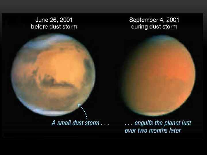 Телескопические исследования Марса обнаружили сезонные изменения его поверхности. Это относится к «белым полярным шапкам» , которые с наступлением осени начинают увеличиваться (в соответствующем полушарии), а весной довольно заметно «таять» , причем от полюсов распространяются «волны потепления» . Значительная часть поверхности Марса представляет собой более светлые участки ( «материки» ), которые имеют красновато-оранжевую окраску; 25% поверхности — более темные «моря» серозеленого цвета, уровень которых ниже, чем «материков» .