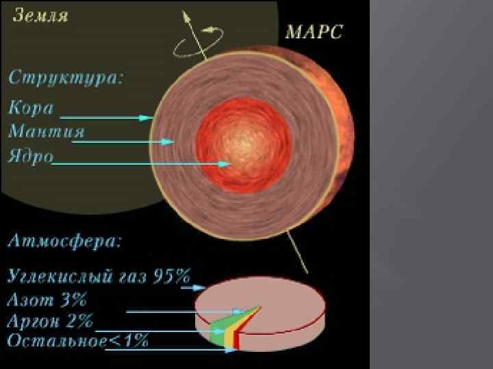 Марс – четверта від Сонця та сьома по величині планета Сонячної системи. Орбіта: 227 940 000 км (1, 52 АЕ) от Солнца Діаметр: 6 794 км Маса: 6. 4219 е 23 кг