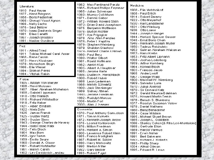 • La población global judía es de aproximadamente 14, 000. 00, o sea el 0. 02% del total de la población mundial. Los judíos han recibido los siguientes premios: