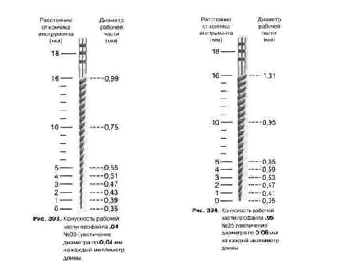 • Конусность профайлов составляет 04 или 06 (4% или 6%), т. е. диаметр инструмента увеличивается на 0, 04 или на 0, 06 мм на каждый миллиметр длины соответственно.