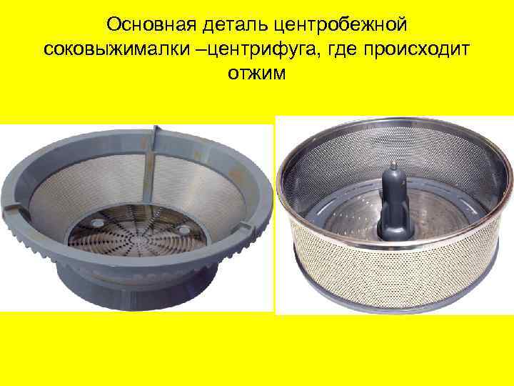 Основная деталь центробежной соковыжималки –центрифуга, где происходит отжим
