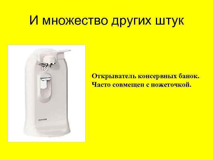 И множество других штук Открыватель консервных банок. Часто совмещен с ножеточкой.