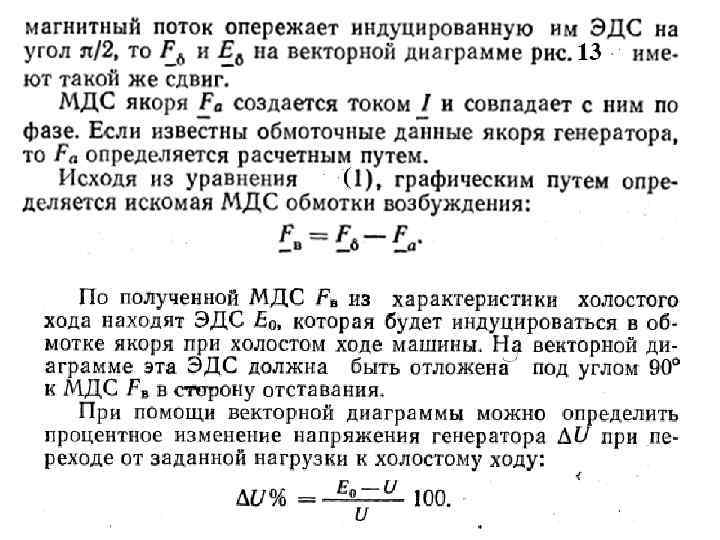 Рис. 13. Построение векторной диаграммы неявнополюсного СГ при акт. -инд. нагрузке с учётом насыщения магнитной цепи (диаграмма Потье)
