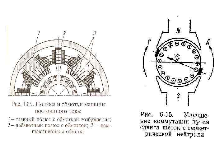 Способы улучшения коммутации iд = (ер+евр) / rщ 1. Выбор щеток 2. Уменьшение реактивной ЭДС в коммутирующих секциях 3. Добавочные полюса 4. Смещение щеток с геометрической нейтрали