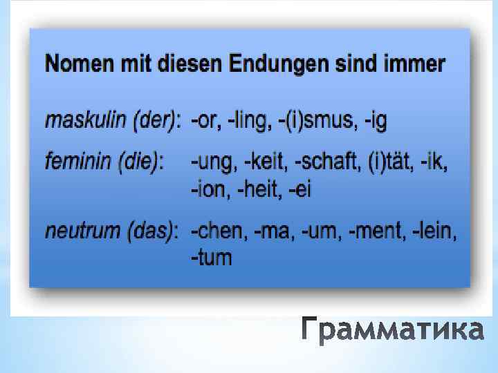 Maskulinum (der)- мужской род Femininum (die)- женский род Neutrum (das)- средний род