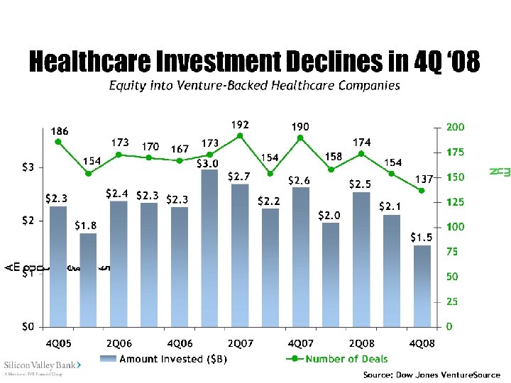 Total medtech financing While venture capital held up, total financing was down sharply … Source: Ernst & Young, Think. Equity Partners, Windhover, Dow Jones Venture. Source and Jefferies & Co.