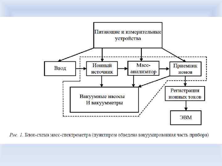 Основы метода: Метод основан на переводе частиц исследуемого вещества в состояние ионизированного газа с последующим их разделением и детектированием Стадии эксперимента: 1. Предподготовка пробы 2. Подготовка, ввод и ионизация пробы 3. Ускорение ионов 4. Разделение ионов 5. Детектирование ионов 6. Обработка сигналов