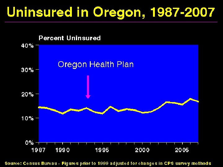 Oregon 1992 “Today our dreams of providing effective and affordable health care to all Oregonians has come true. ” Gov. Roberts “The most far-reaching health care reform in the nation. ” Sources: Washington Post 6/9/92 and 3/20/`93