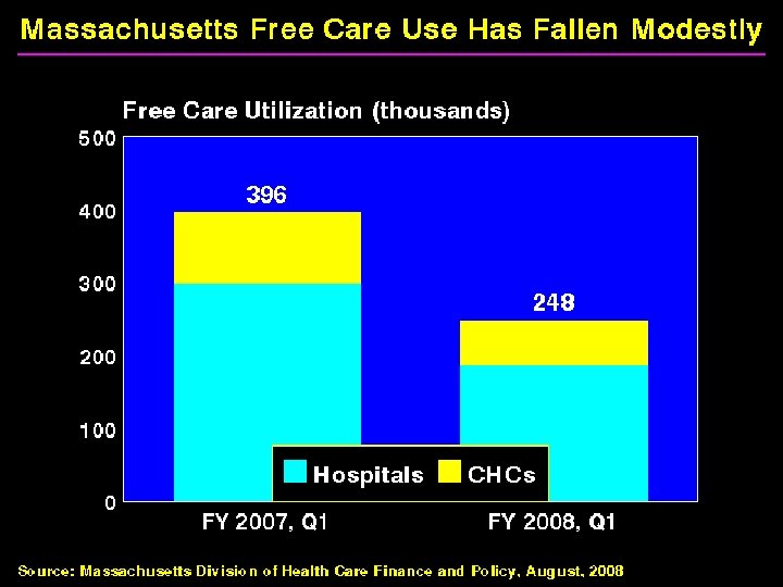 Massachusetts Health Reform New Coverage • < Poverty - Medicaid HMO • 100% - 300% poverty - Partial subsidy • > 300% poverty – Buy Your Own